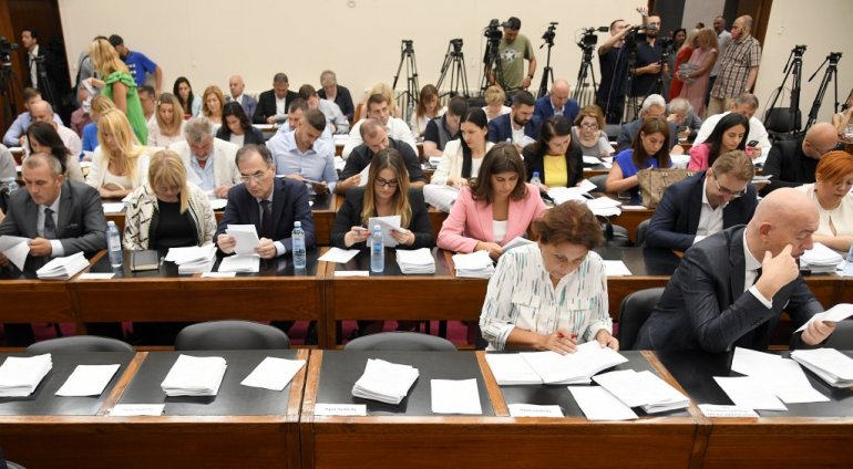 Na dinamičnoj sednici, predsednik Skupštine Nikola Nikodijević imao je "pune ruke posla" i gotovo sve vreme opominjao je prisutne da se drže dnevnog reda i paze na Poslovnik. Opozicija je negodovala jer su im materijali za sednicu u kojima je bio spisak razrešenih i novopostavljenih rukovodilaca dostavljen nekoliko minuta pre početka zasedanja. Mila Popović iz odborničke grupe "Ujedinjeni" podnela je predlog da se izbor novih direktora prebaci sa skraćenog na redovni postupak, kako bi bilo vremena za raspravu. Međutim, svega 25 glasova od prisutnih 96 odbornika (od ukupno 110) bilo je nedovoljno za usvajanje tog predloga. Direktori su izabrani po skraćenom postupku, bez rasprave, ali je ova tačka produžila trajanje sednice na gotovo ceo dan.
