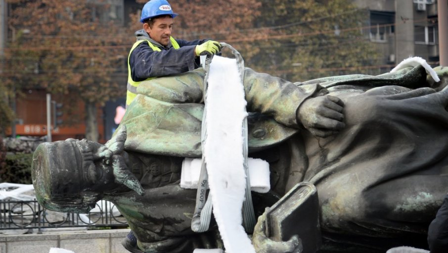 SKINUT SPOMENIK VUKA KARADŽIĆA: Skulptura ide za Smederevo (FOTO/VIDEO)