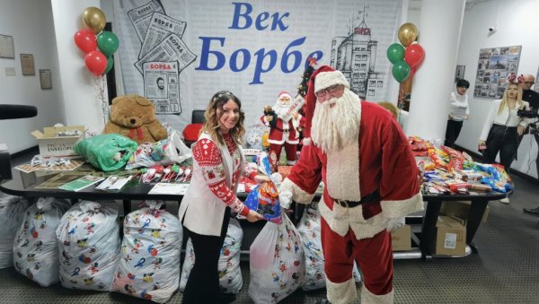 KOMPANIJA "Borba" juče je u svojim prostorijama na Trgu Nikole Pašića 7 organizovala humanitarnu akciju prikupljanja novogodišnjih paketića "Budi i ti Deda Mraz", čime će obradovati mališane iz Prihvatilišta za decu Beograda.