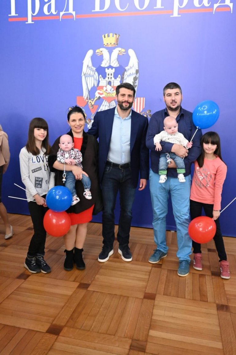 Dočekao ih je gradonačelnik Beograda Aleksandar Šapić koji im je poželeo srećne praznike i istakao da će Grad učiniti sve da pomogne porodicama sa više dece te će osim jednokratne pomoći, odlukom o besplatnim udžbenicima, vrtićima ali i kuponima nastaviti da finansijski olakšava njihovo odrastanje. Iznos jednokratne pomoći daje se svake godine u visini jedne, dve ili tri prosečne plate, u zavisnosti od starosti deteta.