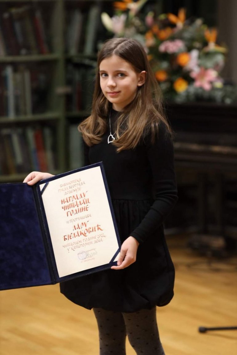 Kada je pošla u prvi razred, već je pročitala na desetine knjiga. Nedavno je devetogodišnja Lara Bjelaković, učenica trećeg razreda OŠ "Mladost", ponela priznanje "Čitalac godine" u kategoriji dece do 14 godina, koje dodeljuje Biblioteka grada Beograda.
