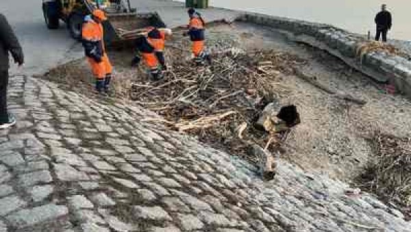 Radnici JKP "Gradska čistoća" u sredu su tokom celog dana uz pomoć mehanizacije čistili deo obaloutvrde i Zemunskog keja.