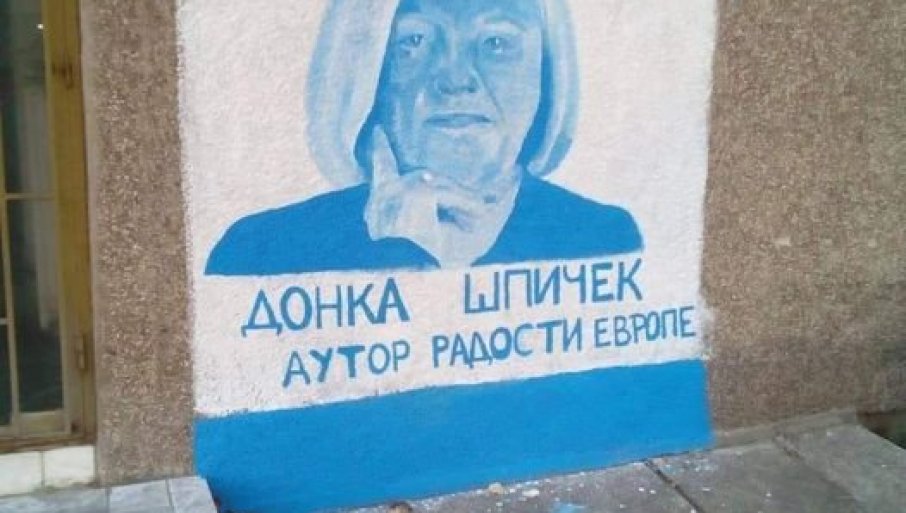 MLADA beogradska umetnica Tijana Đoković naslikala je Donku Špiček, bivšu urednicu u Radio televiziji Srbije i osnivača manifestacije Radost Evrope na zidu. Mural u plavoj boji, inače njenoj omiljenoj, nalazi na početku Lješke ulice na Čukarici preko puta Hrama Svetog Đorđa, gde je rođena.