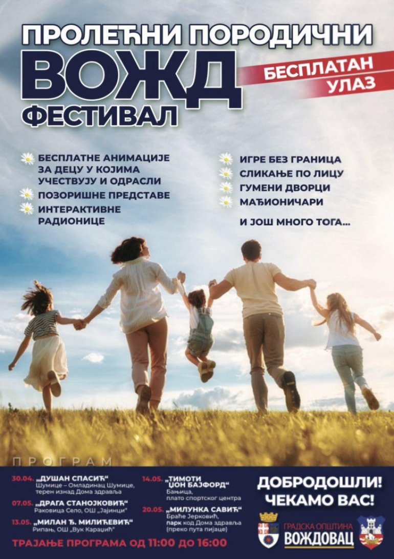 "Dragi naši Voždovčani, draga deco, mame, tate, bake i deke, dobrodošli ste i pozvani na svaki od događaja koje je vaša Gradska opština Voždovac spremila za vas tokom maja meseca, meseca posvećenom porodici.