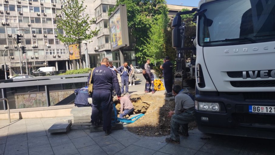 PO ko zna koji put radnci JKP "Beogradski vodovod i kanalizacija" raskopali su deo pločnika kod podzemnog prolaza na uglu Dečanske i Nušićeve ulice u potrazi za kvarom.