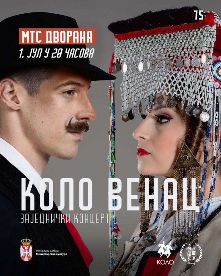 NACIONALNI ansambli „Kolo” i „Venac” sa Kosova i Metohije će u subotu, 1. jula, u MTS dvorani sa početkom u 20 časova prvi put u istoriji ova dva državna ansambla deliti scenu na umetnički podjednak način.