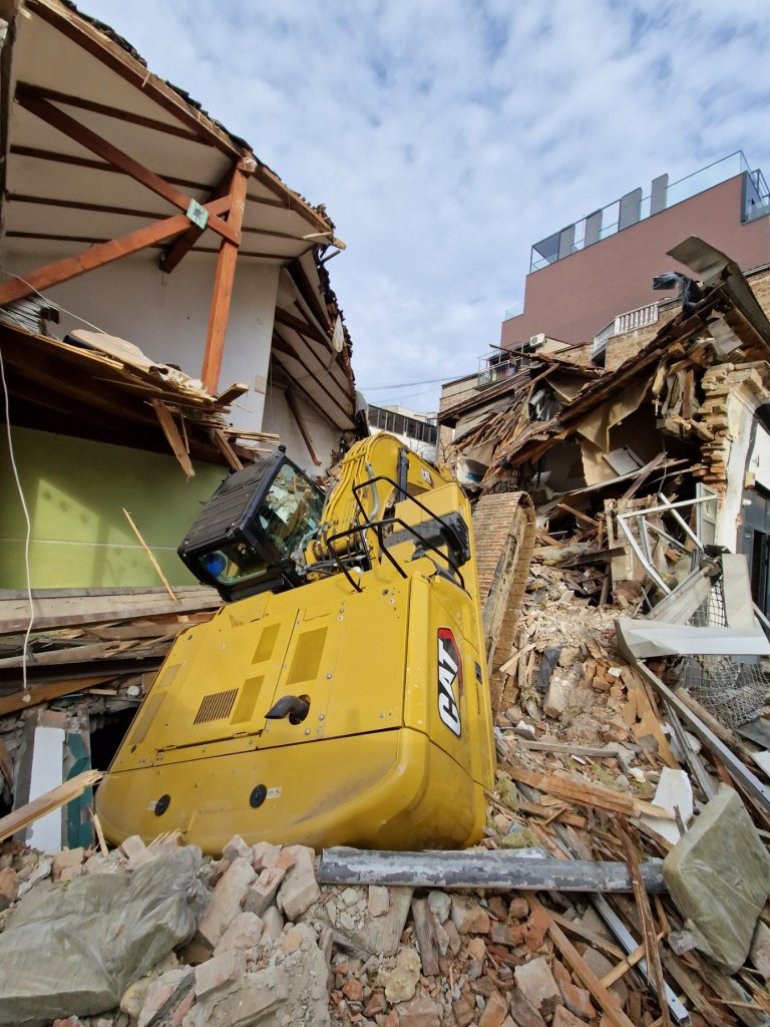 - Prilikom rušenja nismo dobili informaciju da se ispod nalazi podrum, zato se ovo i desilo. Srećom niko nije nastradao, a radnik koji je bio u bageru je dobro. Sačekaćemo mašinu, pa nastavljamo radove - kažu za "Novosti" radnici na gradilištu.