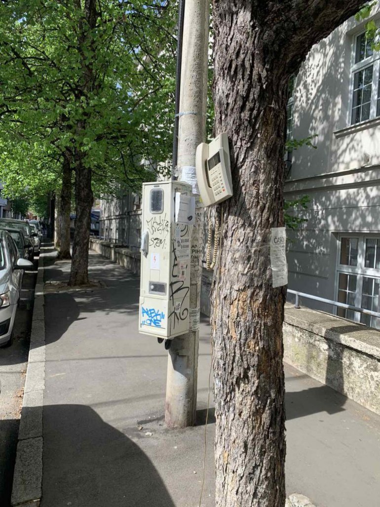 PROLAZNICI u Đušinoj ulici juče su bili u prilici da vide stari fiksni telefon koji je bio okačen na jednom drvetu!