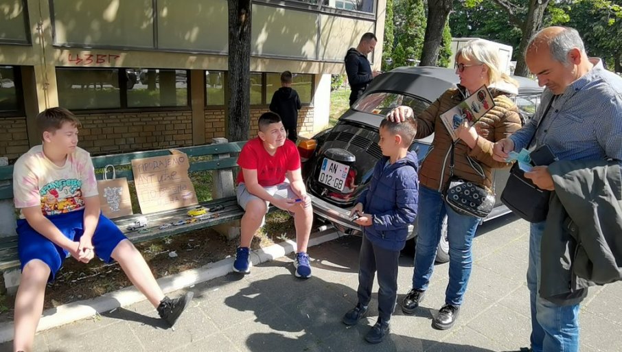 Drugari Vitomir Jovanović i Uroš Savović, učenici OŠ "Filip Filipović", su na izložbi predstavili svoju kolekciju četvortočkaša. Za razliku od onih velikih, njihovi autići su bili za prodaju.