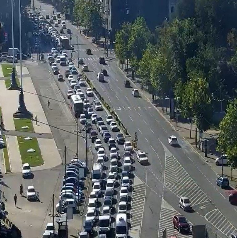Gust je saobraćaj i na svim prilazima strogom centru grada, na Trgu Nikole Pašića, u Bulevaru kralja Aleksandra, Bulevaru despota Stefana...