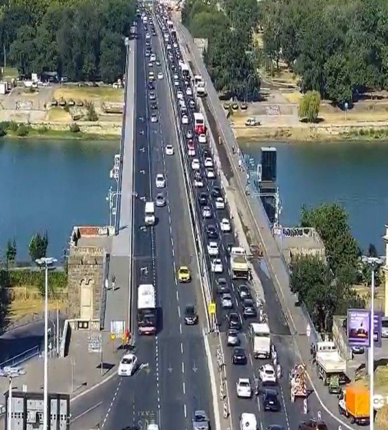 Na Brankovom mostu su još veće gužve zbog toga što je krajnje desna traka u smeru ka Novom Beogradu zatvorena za saobraćaj zbog radova, tako da su vozačima na raspolaganju samo dve saobraćajne trake.