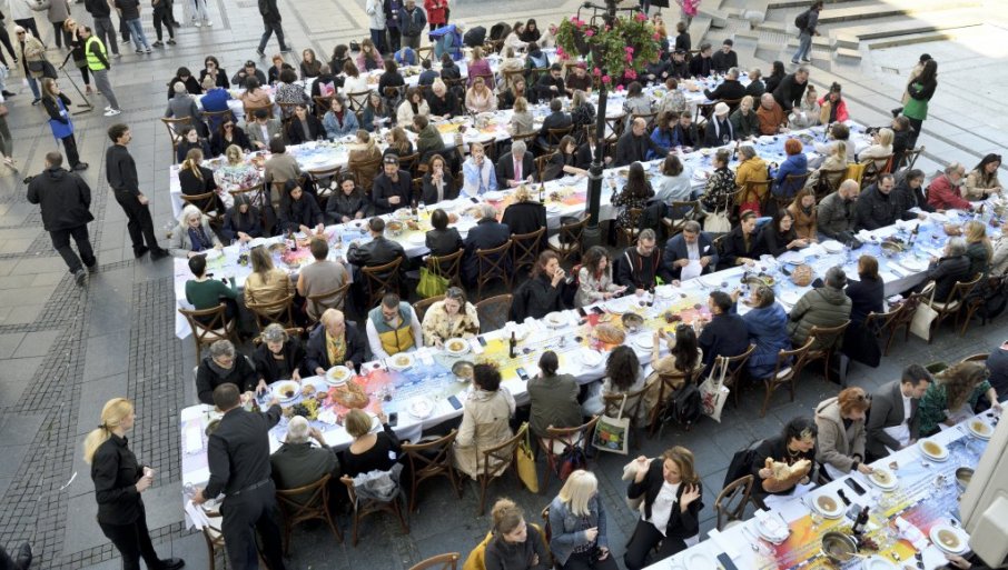 Ovo su samo neka od pitanja koja su se doslovno našla na stolu, tokom performansa "7 puta 70 - Obrok", čiji su autori Lusi i Horhe Orta, održanog kao neka vrsta prologa Oktobarcu, ispred KCB. Na ovaj ručak u javnom prostoru bilo je pozvano 200 zvanica, među kojima su akteri javne, političke i kulturne scene Beograda, sa idejom da "sedeći za istim stolom, dele hleb i hranu" kako bi se kroz to skrenula pažnja na neke od gorućih problema sa kojima se susreću umetnici i kulturni radnici u našoj zemlji.