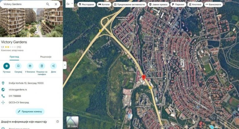 Prema tvrdnjama zabrinutih građana, Victory Gardens - gradilište locirano u ulici Endija Vorhola 10, trenutno simbolizuje sve što je loše u domaćoj gradnji: nestručnost, političku zaleđinu, ignorisanje kupaca i - sada dokumentovano fizičko urušavanje.