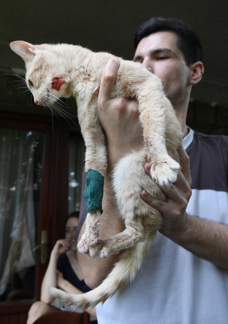 - U šoku smo zbog onoga što se dogodilo, ali sam smatrao da komšije moraju da znaju da se neko ko je spreman da ovo uradi šeta unaokolo - priča Đorđe Popov, vlasnik jednog mačora. - Sve se dogodilo prošle nedelje, kada smo oko podneva začuli dva mačja krika. U prvi mah nismo videli ništa, a onda smo ugledali komšiničinog mačka kome je noga bila krvava. Pomislili smo da ga je ujeo pas, pa smo ga odmah odvezli kod veterinara. Ipak, snimak je pokazao da je na njega pucano vazdušnom puškom, a malokalibarski metak ostao mu je u nozi. Kako su nam objasnili u policiji, pucnje verovatno nismo čuli jer je korišćen prigušivač. Taj mačak se sad uspešno oporavlja, dok se mom, kome je pucano u glavu, još bore za život. Naime, njemu je pucano u usta i metak je izašao napolje, ali ga nije usmrtio. Gde je treća mačka, ne znamo.