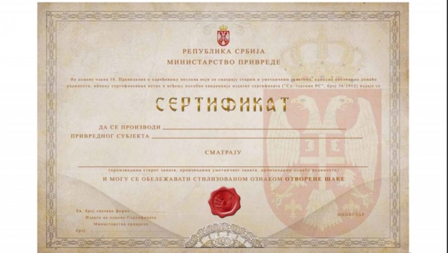 Za neki od 106 starih zanata, koji podležu sertifikaciji, zainteresovani su da očuvaju tradiciju, mogu da podnesu zahtev Ministarstvu. Za taj papir moraće da izdvoje zajedno sa taksama od 4.000 do više od 8.000 dinara.