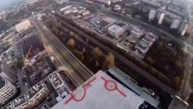 Snimak koji se prvobitno pojavio na Instagram stranici "Moj Beograd" prikazuje kako mladić stoji na vrhu visoke zgrade, koja se nalazi u neposrednoj blizini jednog od bulevara na Novom Beogradu.