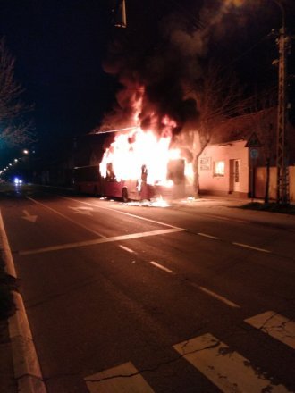 Autobus se zapalilo nakon sudara s džipom, koji je, takođe izgoreo.