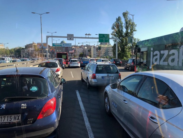 Velike su gužve na potezu od Kanarevog brda do Banjice, na delu od Borske prema Ulici Bahtijara Vagabzade.