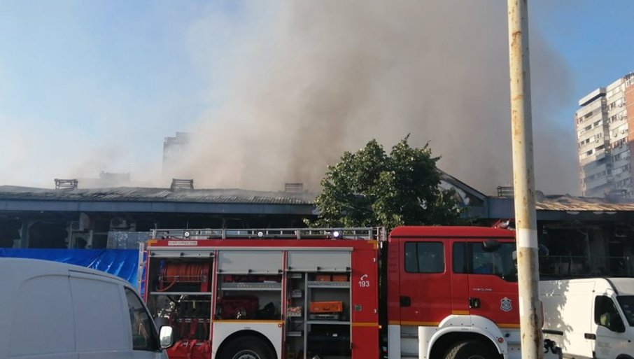Пожар је локализован и стављен под контролу, а над тржним центром видљив је густ, црни дим.