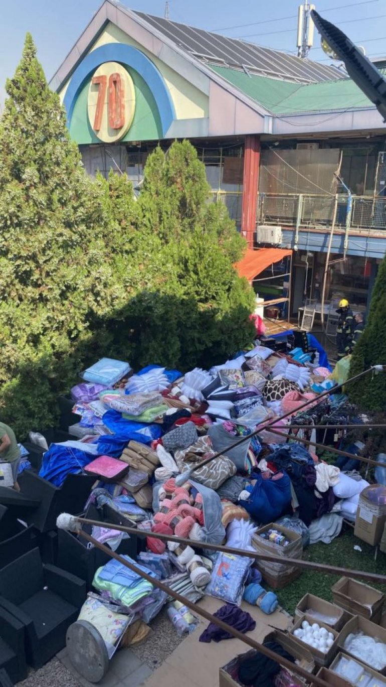 Локали који се налазе на ободном делу приземља делимично су сачувани, и управо из њих сада власници и радници износе преосталу робу.