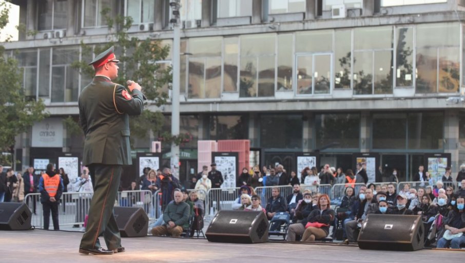 РУСИ ЗАПЕВАЛИ У ЧАСТ СЛОБОДЕ: Солисти хора "Александров" на Тргу Републике у Београду (ФОТО)