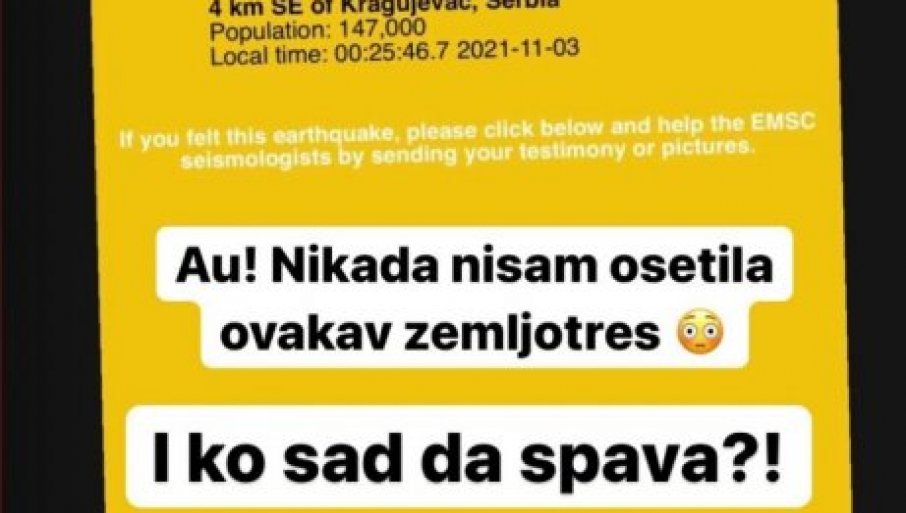 ЗЕМЉОТРЕС У СРБИЈИ: Јаки потреси код Крагујевца