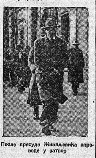 Како дежурни новинар преноси „мртву тишину реметио је само весели цвркут ласта“. Изведени „Живаљевић се само пожурио вешалима, скочио на клупицу, приљубио уз стуб и готово мирно укочено сачекао омчу и белу марамицу…“ Тело се брзо смирило.