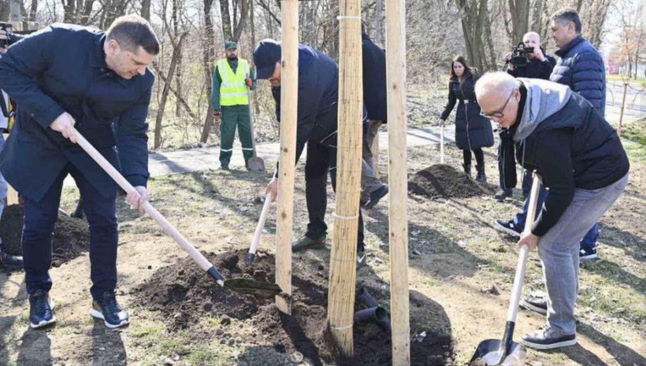 - Иза мене се налази десет стабала, које смо посадили уместо једног које су вандали пре неки дан уништили. Београд је потресла слика исеченог стабла и покушаја да се исеку још три. Данас смо ми засадили десет стабала да покажемо да они не могу да исеку онолико дрвећа колико ми можемо да посадимо - рекао је Весић.