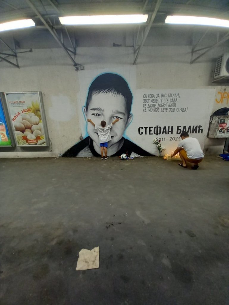 На Фејсбук групи "Правда за Стефана" објављена је срцепарајућа фотографија малог Луке који грли мурал свог преминулог брата.