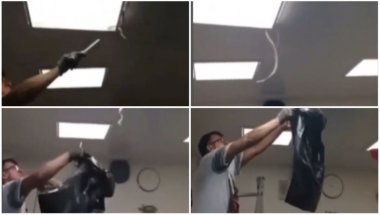 "ЧЕКАЈ, КУМЕ": За једне стрес, за друге смех - Мајстори из плафона расвете ВМА ваде змију (ВИДЕО)