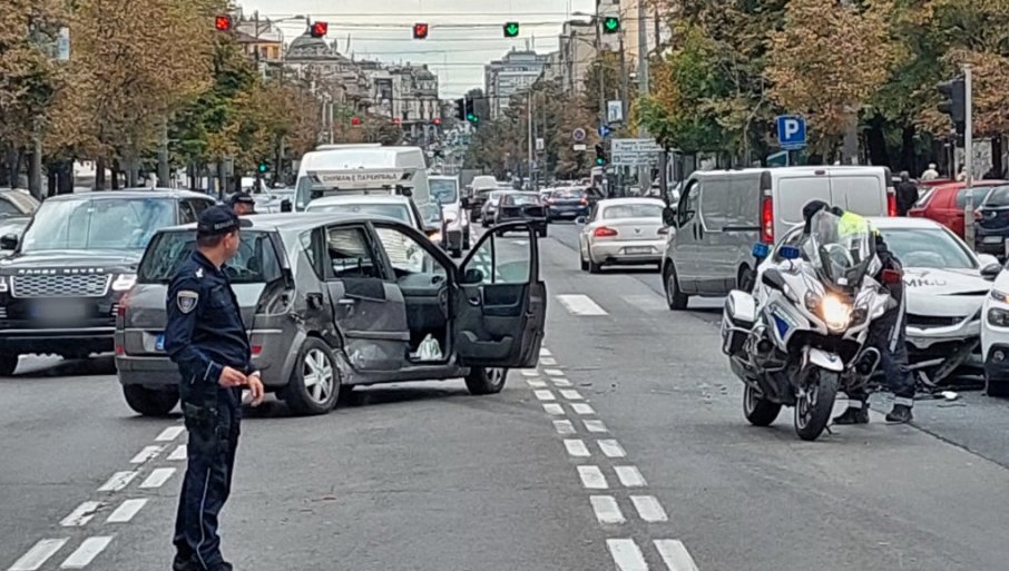 КАРАМБОЛ У ЦЕНТРУ БЕОГРАДА: Судар два аутомобила у Улици кнеза Милоша изазвао хаос - формирале се огромне колоне (ФОТО)