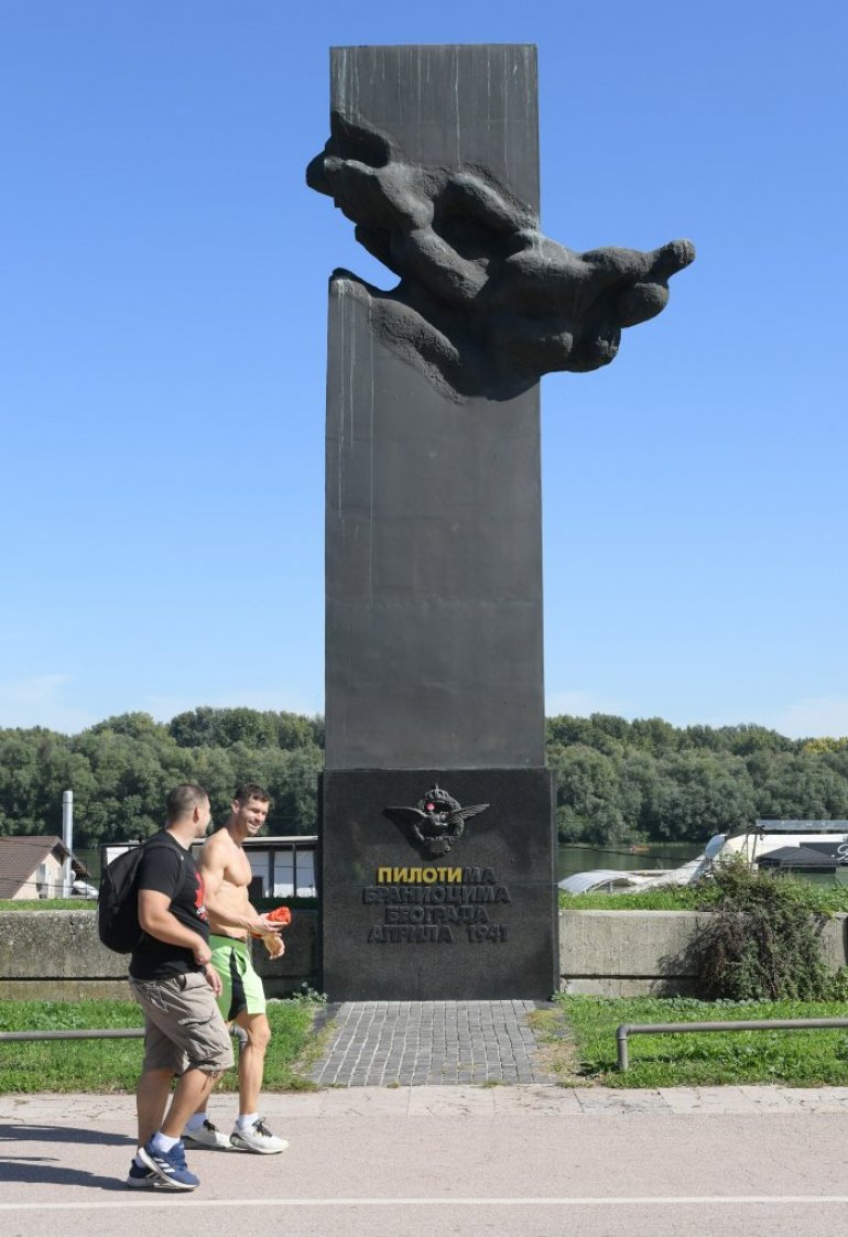 СПОМЕНИК пилотима браниоцима Београда из Другог светског рата на Дунавском кеју, који су вандали крајем септембра оскрнавили обојивши шест слова у жуто биће очишћен!