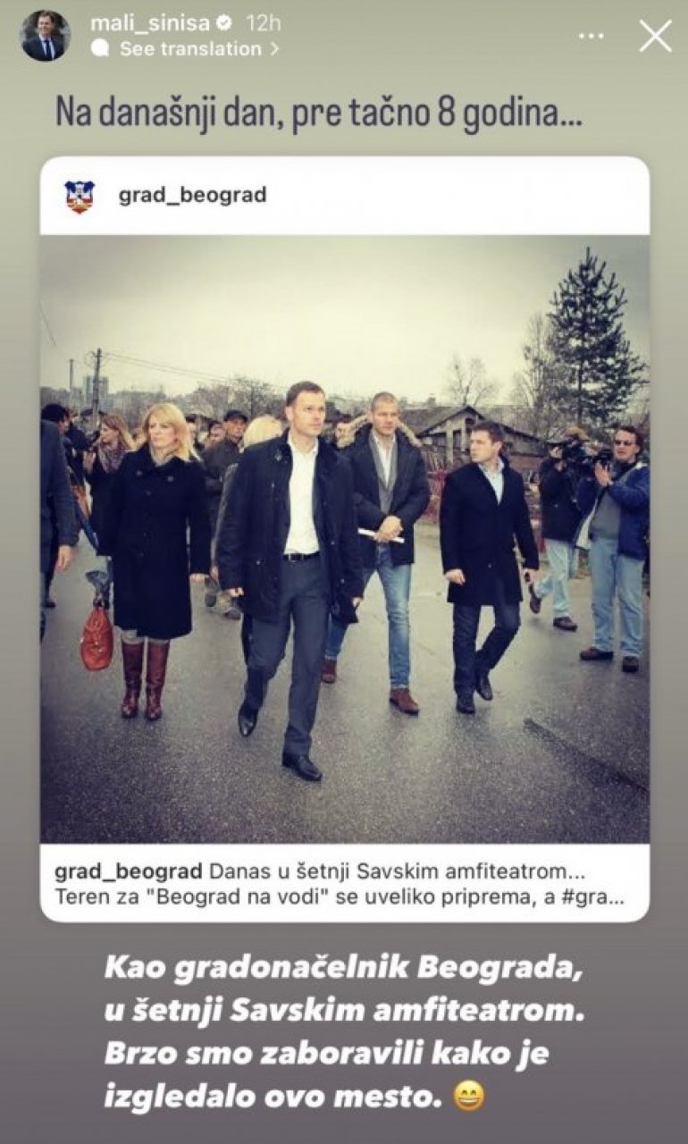 - На данашњи дан, пре тачно осам година... Као градоначелник Београда, у шетњи Савским амфитеатром. Брзо смо заборавили како је изгледало ово место - написао је министар Мали.