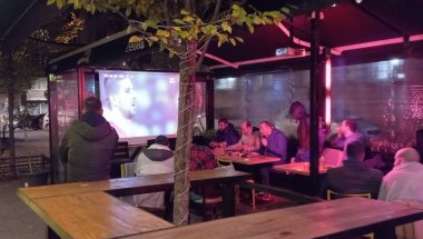 У локалима у центру Београда се још тражи место више испред телевизора, а поједини угоститељи су поставили пројекторе и у баштама.