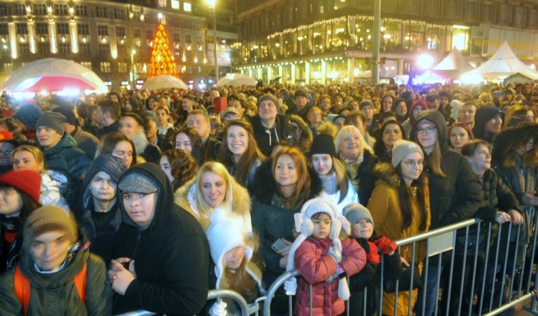 НА ТРГУ Републике окупио се велики број Београђана, али и странаца који ће заједно са Гораном Берговићем и специјалним гостима вечерас у поноћ дочекати Српску нову годину.