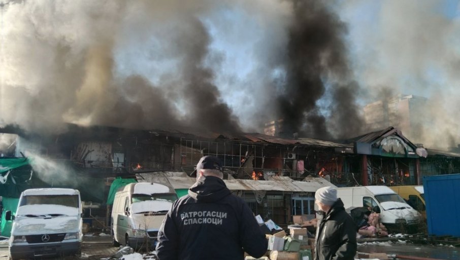 У КИНЕСКОМ тржном центру који се налази у Блоку 70 на Новом Београду јутрос је поново избио велики пожар.