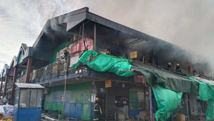 У КИНЕСКОМ тржном центру који се налази у Блоку 70 на Новом Београду јутрос је поново избио велики пожар.