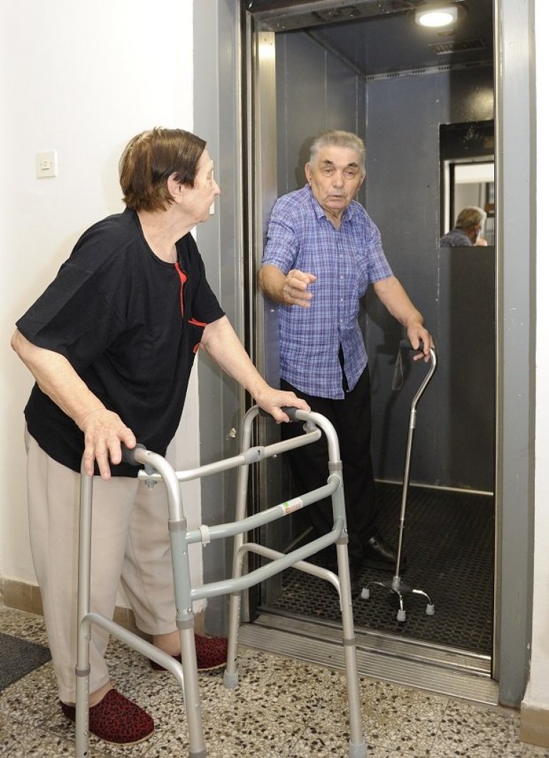Како нам се пожалила Невенка Д. (85), непријатност ју је дочекала по повратку из бање, у коју је отишла после операције кука. Откад се вратила, не успева да изађе напоље, јер са ходалицом не може да се спусти. Њен годину дана старији супруг, са две штаке, једва и до лифта може да дође. Али и тада је џабе труд.