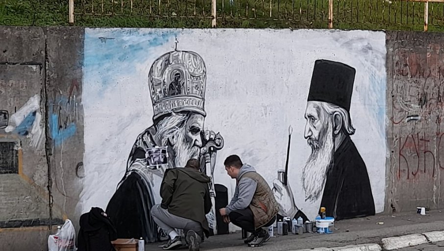 ВЛАДИКА АМФИЛОХИЈЕ И ПАТРИЈАРХ ПАВЛЕ КРАСЕ ЗИД У МИРИЈЕВУ: Мурал са ликовима двојице великана освануо у овом београдском насељу (ФОТО)