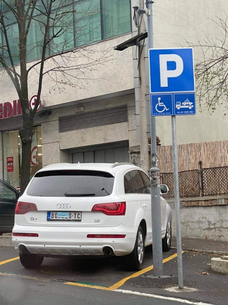 Осим чињенице да је возач оставио аутомобил на месту предвиђеном за инвалиде, паркирао га је у улици којом пролази "Око соколово".