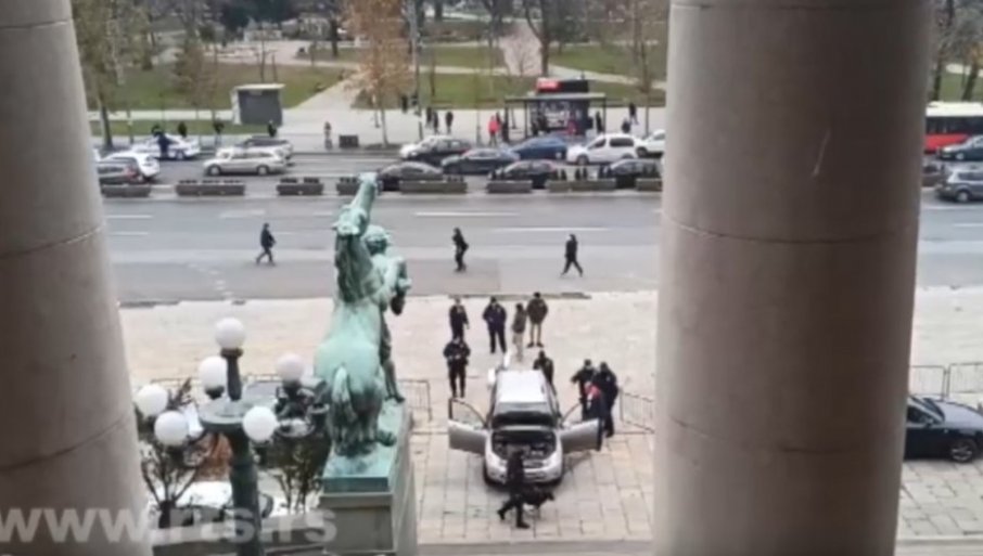 Дежурни полицајци који обезбеђују Скупштину прегледали су да ли у возилу има експлозива.