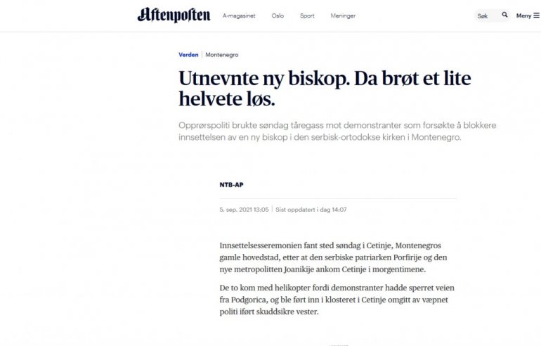СВЕТСКИ медију су данас извештавали о напетој ситуацији у Црној Гори због устоличења митрополита црногорско-приморског Јоаникија.