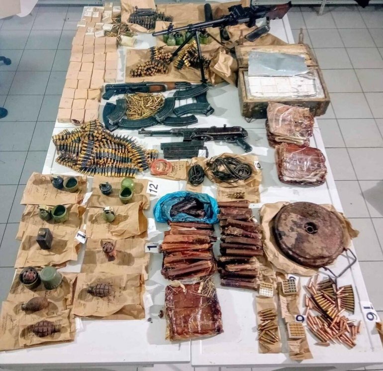 У саопштењу Управе полиције наводи се да је пронађен пушкомитраљез М-84 7.9 мм, аутоматска пушка М-70 7.62 мм са осам оквира, аутомат са три оквира, пушка Mauser калибра 8 мм, пушка Застава Армс М-70 калибра 30 – 06 са оптиком, ловачки карабин М-98 калибра 8x57, пиштољ Pietro Beretta, обрушеног фабричког броја, калибра 9 мм, пиштољ Browning 9 мм Лугер, оптика.