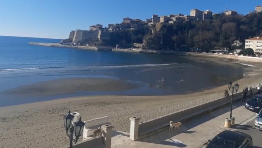 ДЕЦЕМБАРСКО КУПАЊЕ У МОРУ: Деца се брчају на Малој плажи у Улцињу (ФОТО)