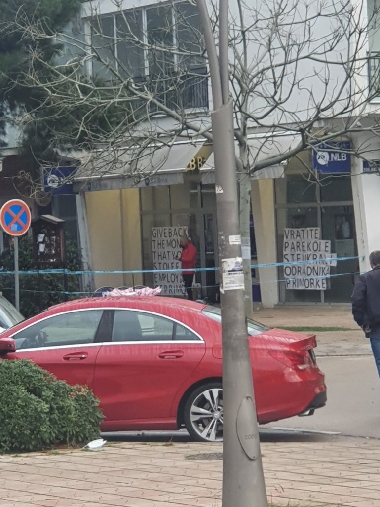 Према првим информацијама "Новостима", у питању је Баранин Един Бегзић, коме су родитељи радили у некадашњој прехрамбеној фабрици “Приморка”. Банка је облепљена натписом "Вратите новац који сте украли од радника Приморке".