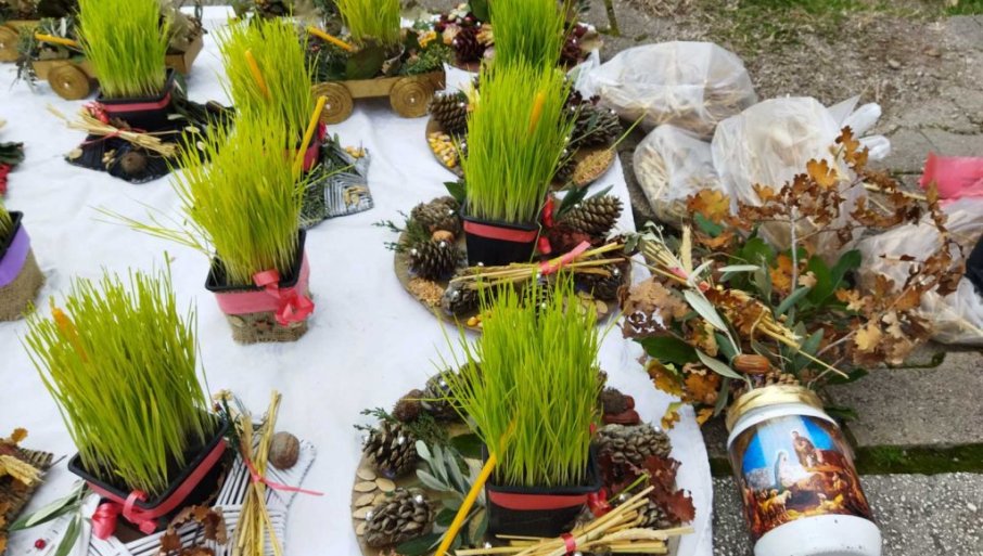 У понуди су аранжмани направљени од бадњака, украшени пшеницом, сламом ловором, исписаним порукама …