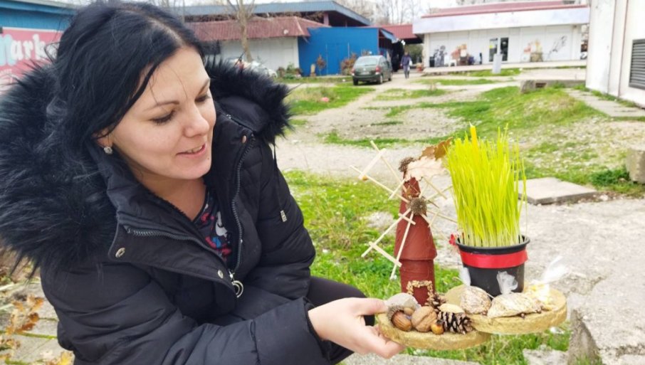 -Ове године сам први пут направила божићне аранжаме. Мотивисала ме љубав према Божићу, према великом празнику. Све је ручни рад: корпе, колица.... Има ту и војвођанских мотива- ветрењаче. Аранжани су од 2 до 5-6 евра. Мајка сам четворо деце и сваки евро је добродошао. Незапослена сам, а креативност ми помаже да зарадим новац, каже Јасмина.
