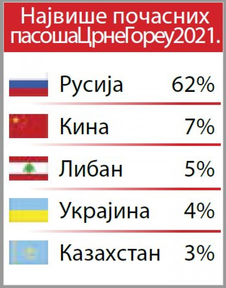 ТОКОМ 14 месеци мандата владе Здравка Кривокапића додељено је скоро исто почасних држављанстава као у претходних десет година - 290. Само у прошлој години чак 271, што је рекордан број и највише их је додељено Русима.