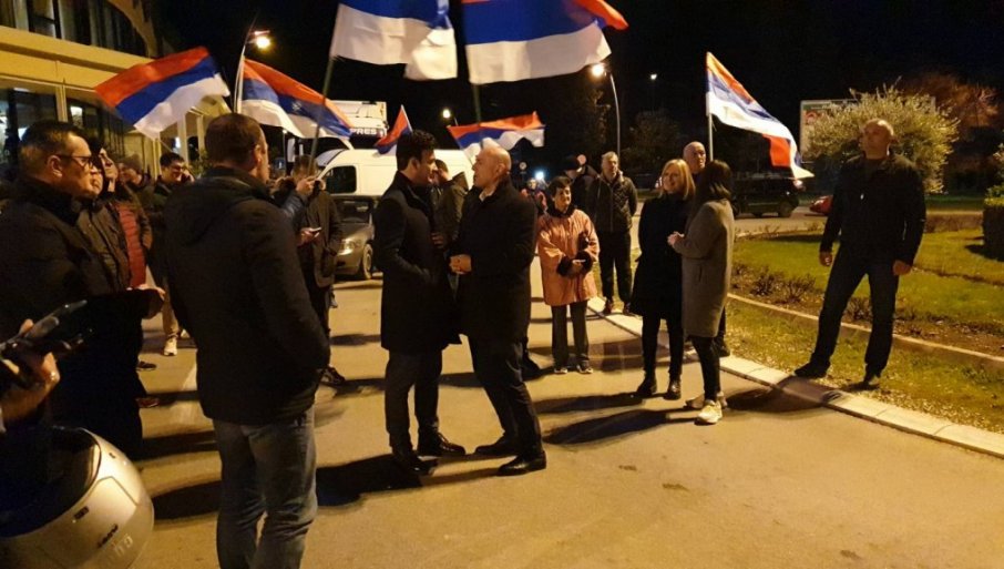 Посланик Максим Вучинић и предсједник општине Никшић Марко Ковачевић присутни су међу групом грађана која је окупљена у Никшићу.