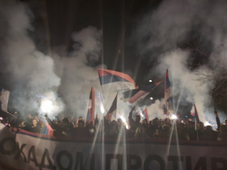 У Никшићу је организована и спектакуларна бакљада, а окупљени народ кличе Србији, Космету и Русији.